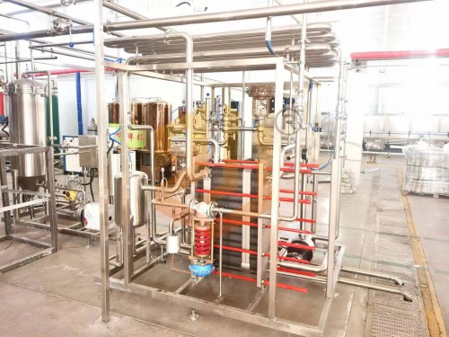 隨著啤酒行業規模不斷擴大,技術水平不斷提高,啤酒品種不斷增多,原料、能源、運輸等價格不斷膨脹。應對市場,必須節能降耗,降低生產成本。在提高產品質量過程中,啤酒的生物穩定性與巴式滅菌的溫度有很大的關系。我公司在吸收消化國外先進的啤酒殺菌技術基礎上研制生產了瞬時殺菌裝置。采用高效的板式換熱器實現啤酒與熱水的換熱,使啤酒瞬間加溫并經過恒溫殺菌后再經過冷媒介質降至原有溫度。通過瞬間加溫、保溫和降溫的過程使啤酒完成巴氏殺菌,達到殺菌25pu值,并可使啤酒中的CO2含量和啤酒口味風味保持不變。