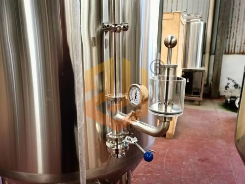 精釀啤酒設備使用的過濾槽與旋沉罐:采用上下兩層的設計方式,整體占地面積小,過濾槽采用銑制篩板,頂部采用異型人孔設計,側面配有出糟口,方形人孔門設計更有利于啤酒麥糟的清理工作,同時還配有出糟板。內部配有耕刀裝置,用于疏松麥糟層以及出糟使用。